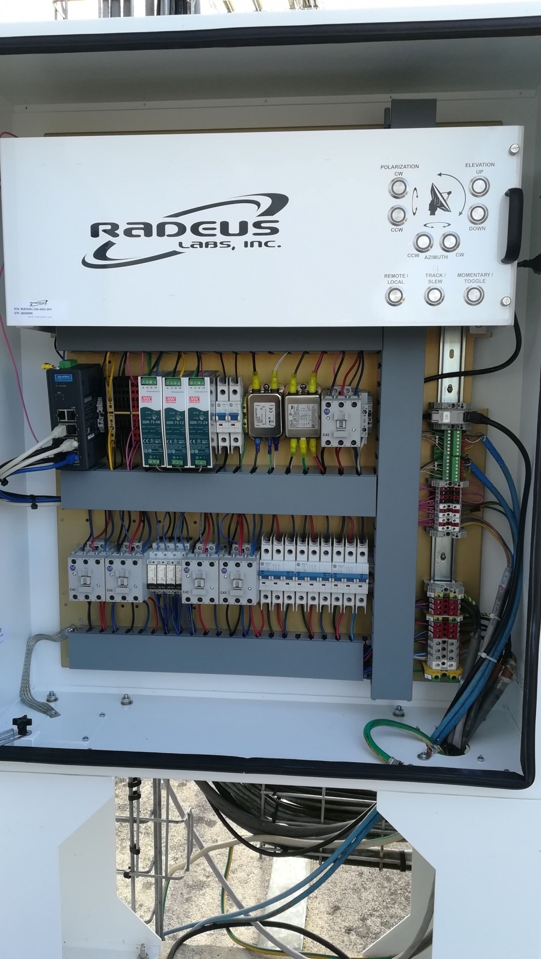 We have just finished the installation and configuration of a new 8200 Antenna Controller Unit in replacement of a VERTEX 7200 on a C band 2.4 meters antenna. We have installed and configured the full system including the indoor Rack Controller and the Outdoor Drive Cabinet. This is the 4th system installed on this teleport and its just the beginning !!! System designed and built by RADEUS Labs